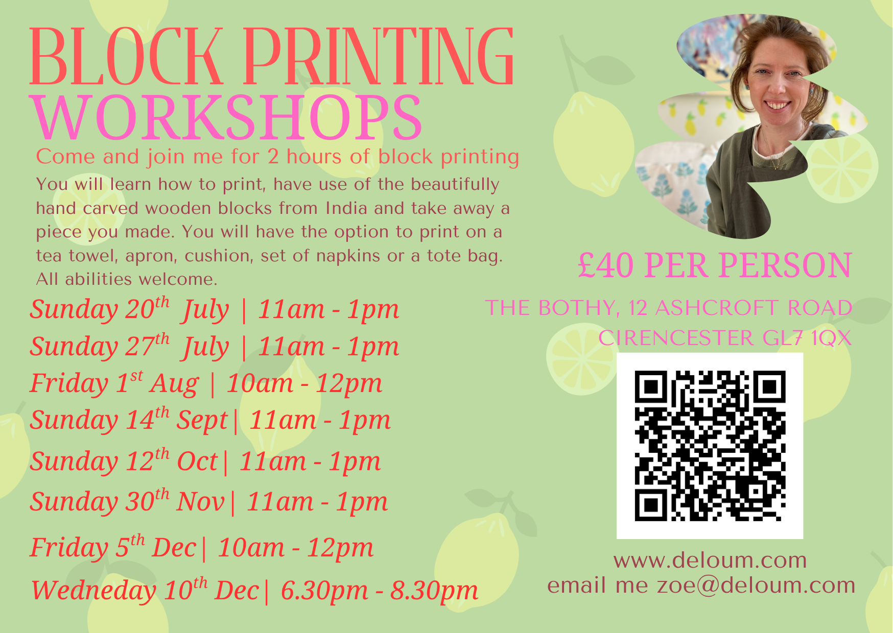 We’re very happy to announce that Zoe will be running a few Block Printing workshops using hand carved wooden blocks from India! With just a small but intimate group of like minded, creative souls, this will prove to be incredibly popular, so make sure to book quick using the link below!